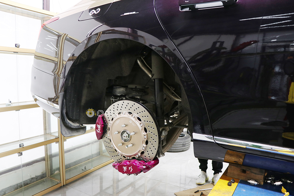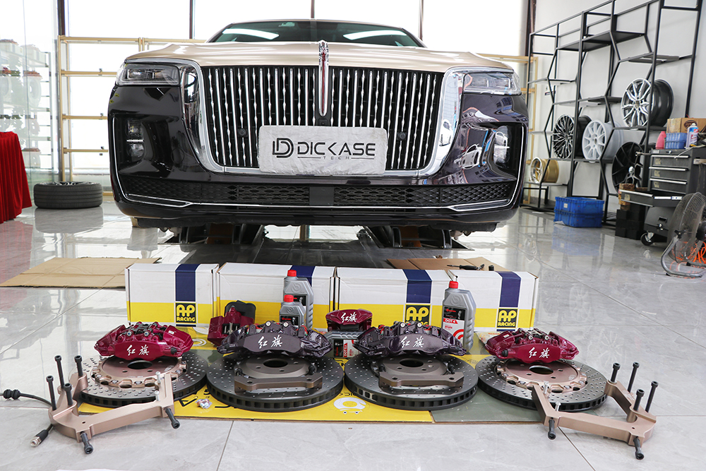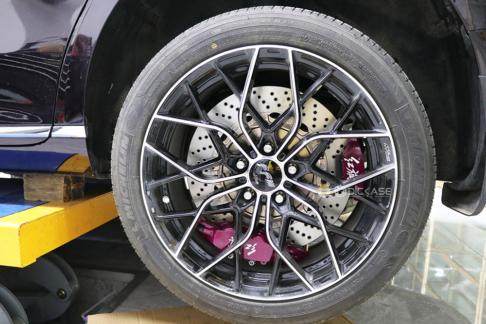 一臺(tái)車裝6個(gè)卡鉗是什么樣的,前面升級(jí)ap9560大六活塞卡鉗,后面是電子手剎所以只能升級(jí)雙卡鉗套裝,前輪2個(gè)卡鉗+后輪4個(gè)卡鉗,正常制動(dòng)時(shí)只有4個(gè)卡鉗工作,小卡鉗是駐車用的電子手剎卡鉗。